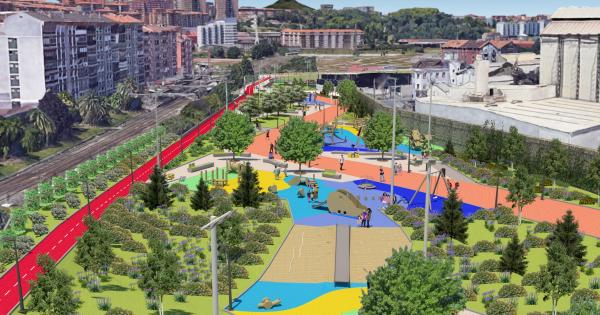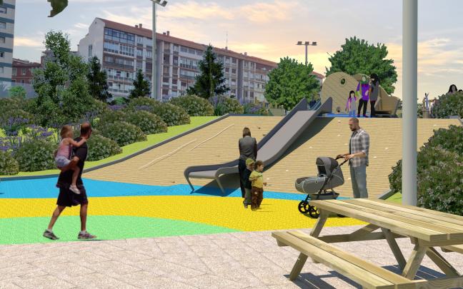 En total, 11.022 metros cuadrados de parque que contará con nuevas zonas verdes, estanciales, de juego y deportivas. Ampliando, de esta forma, la oferta deportiva del espacio junto al pump track ejecutado en una fase anterior en la parcela contigua. Además, se dará continuidad al bidegorri por una zona más amable y se potenciarán los recorridos peatonales en el interior del nuevo espacio.