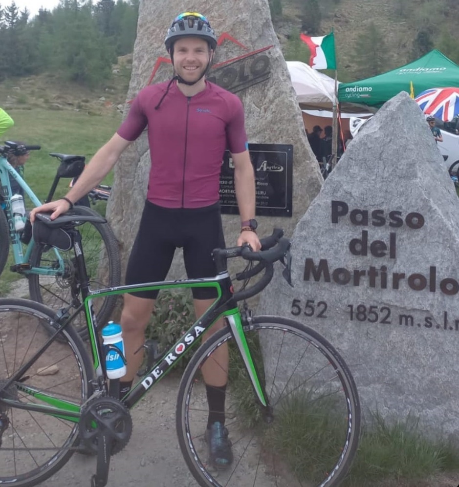 El jugador de Mutriku ha publicado en su cuenta de Instagram varias fotografías de su experiencia en el Mortirolo, incluida una imagen en la cima del coloso italiano, de 1.852 metros.