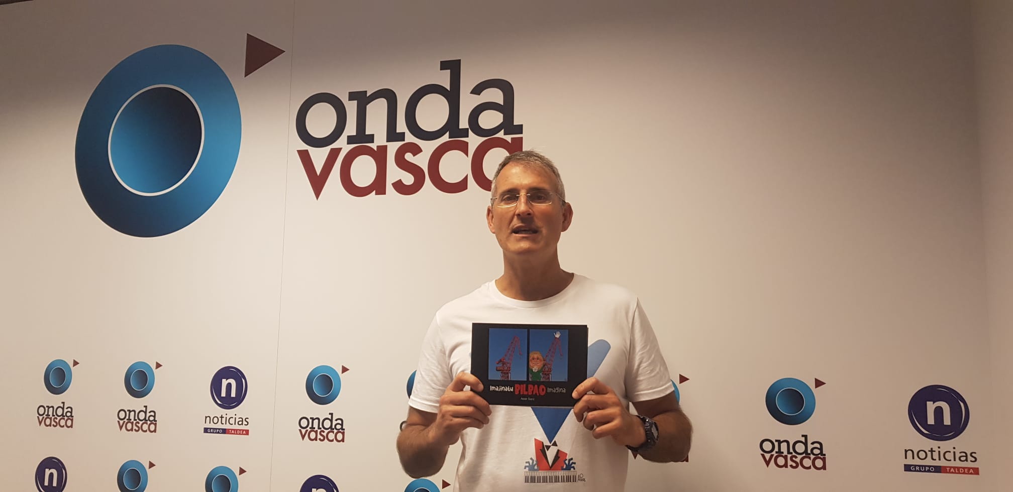 El premiado ilustrador y humorista gráfico Asier Sanz presenta en Onda Vasca un libro de collages de arte urbano "Imajinatu Bilbao" que hoy sale a la venta en librerias y que nos propone un viaje por el mobiliario urbano con el poder de la imaginación.