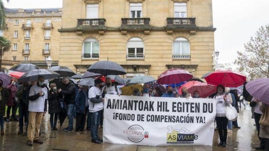 La Asociación de Víctimas del Amianto de Euskadi Asviamie se ha concentrado hoy en los juzgados de Donostia en apoyo al trabajador F.X.S.I. que reclama una indemnización de 327.586 euros por el adenocarcinoma pulmonar que sufre y que, según defiende, está causado por trabajar expuesto al amianto sin protección respiratoria.