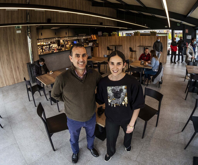 Katrine Leache Gárriz, natural de Aoiz, regenta el bar cafetería Athika 21 con la ayuda de su hermano Jon y su padre José Miguel. "En enero de 2021, vimos que el Ayuntamiento de Esteribar sacaba la parcela a concurso público. Katrine tenía experiencia en hostelería así que decidimos presentar nuestra propuesta. Fue la más valorada", recuerda José Miguel.