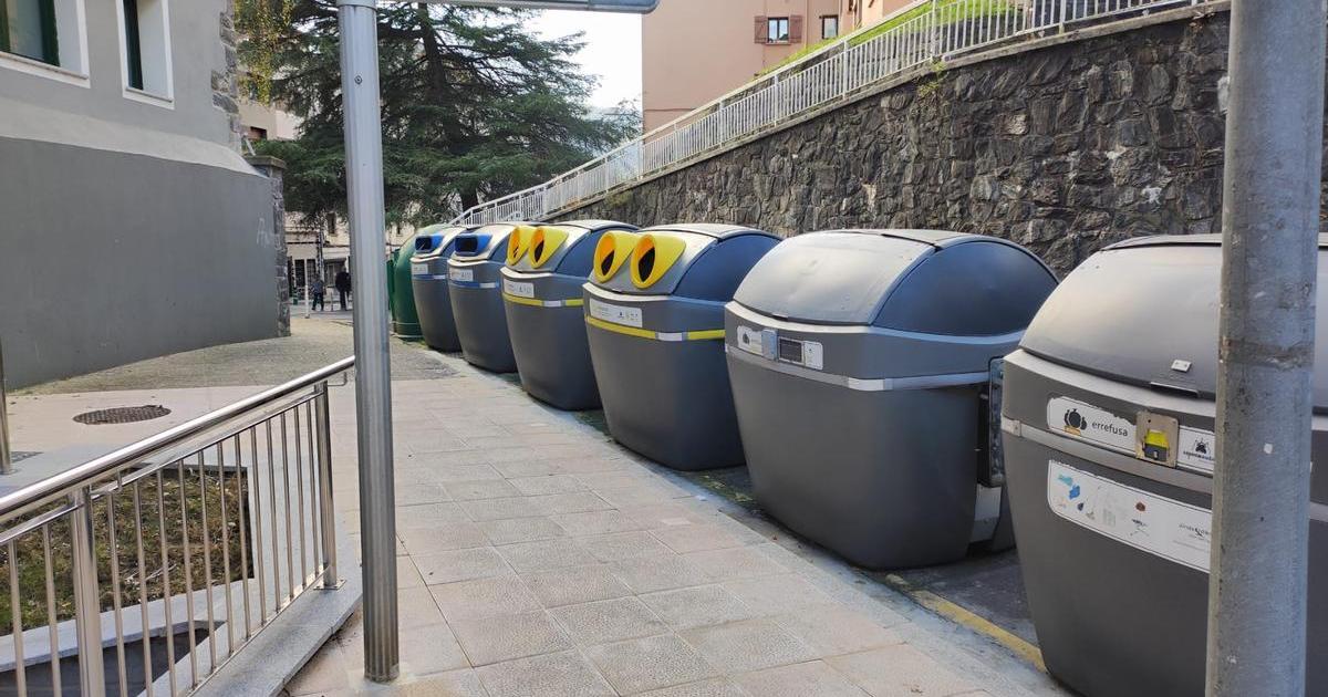 Vista de contenedores para la recogida de basuras en el casco urbano de Azpeitia.