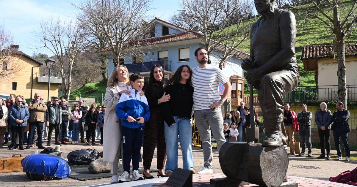 Una escultura de bronce de 300 kilos y dos metros, junto a su baserri