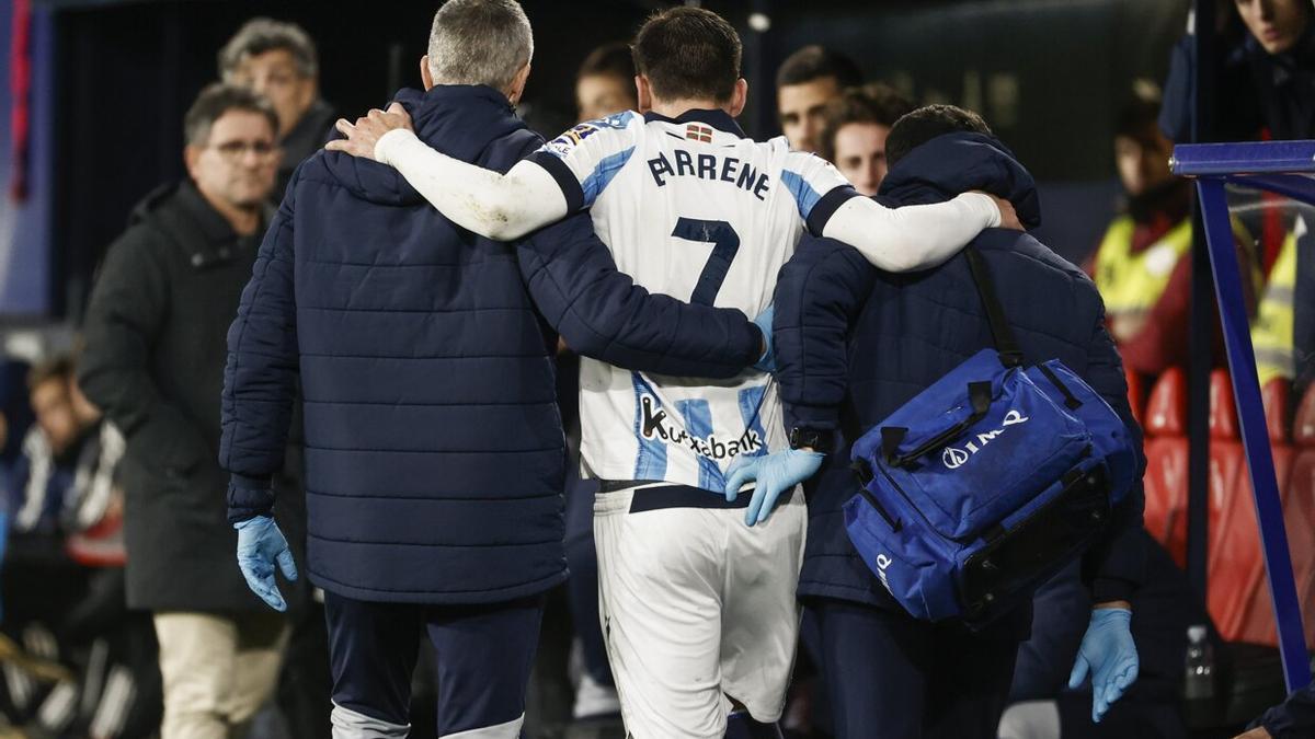 Imanol Alguacil no podrá contar ni con Ander Barrenetxea, que cayó lesionado ante Osasuna y que sufre un esguince en el tobillo derecho según ha confirmado esta mañana el club, ni con el defensa central Robin Le Normand, que deberá cumplir ciclo de tarjetas y será sancionado con un partido de cara al choque del próximo sábado contra el Villarreal. Así las cosas, el entrenador txuri urdin tirará de Aritz Elustondo o Pacheco para reemplazar al bretón, mientras que en lo que a Barrene respecta, todo apunta a que sea Oyarzabal quien vuelva a la banda izquierda dejando el puesto de delantero centro a Sadiq, que ya fue titular el sábado pasado y que está en un momento de forma excelente, ya que volvió a ver portería con un golazo desde fuera del área y que, a la postre, sirvió para que la Real empatara el partido.