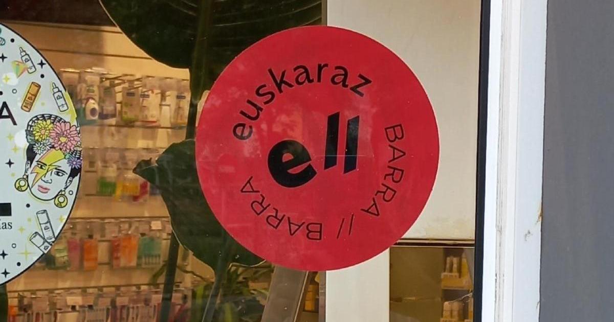 El símbolo de la campaña en sus escaparates acredita que cuentan con personal que se comunica en euskera