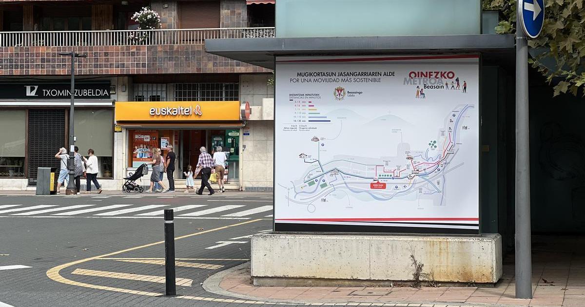 Con motivo de la Semana Europea de la Movilidad, Beasain ha estrenado el Oinezko Metroa, un gran mapa peatonal instalado en Barrendain plaza, frente a la estación de tren, que muestra los tiempos necesarios para desplazarse caminando entre distintos puntos de la localidad.