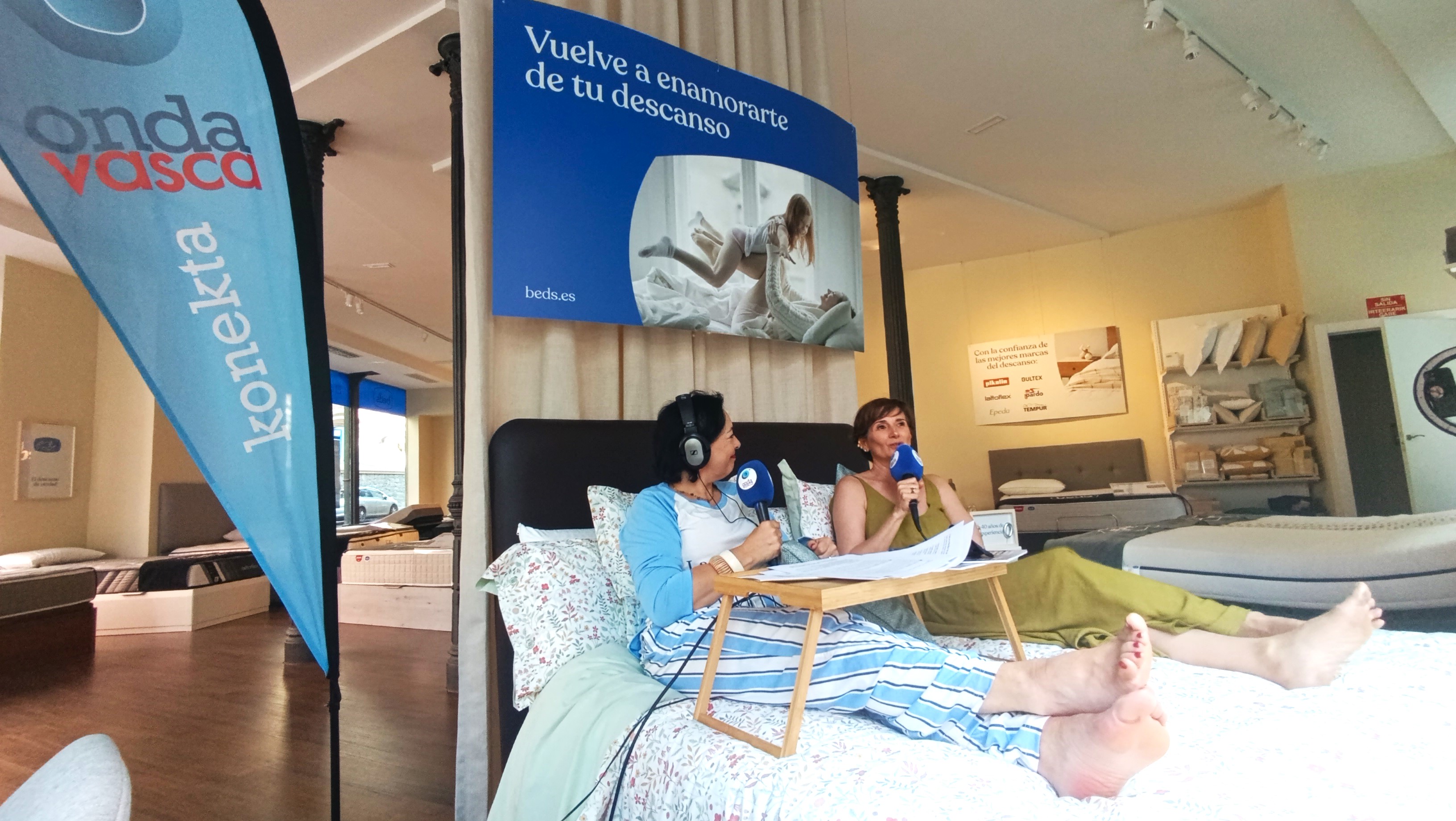 El pasado 20 de junio, nombrado día más feliz del año, nos metimos literalmente a la cama, una acción original con la locutora Ewa Murillo de ONDA VASCA para vivir el efecto Bed's en primera persona, en una de las tiendas más icónicas de la cadena de retail descanso en la ciudad de Bilbao, en calle Padre Lojendio, 5. Para ello, hablamos con Álex Tomás, mánager de Bed's Zona Norte; Sonia Corominas, responsable de la tienda de Bed's de Bilbao; Elena Guerra, clienta de Bed's Bilbao Alameda de Urquijo, creativa publicitaria e influencer; Arantxa Herráiz, responsable de marketing de Bed's; y Fernando Lorenzo, colaborador de ONDA VASCA, quien realizó un especial musical con canciones relacionadas con las camas.