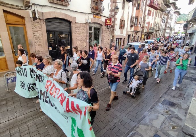 Una gran manifestación recorrió este viernes por la tarde las calles de Elizondo. Las trabajadoras del Centro Hospitalario Benito Menni salieron a la calle, junto a vecinos y vecinas de la comarca, para exigir la negociación de un convenio digno, algo que según denuncian, se les niega desde la dirección de la empresa.