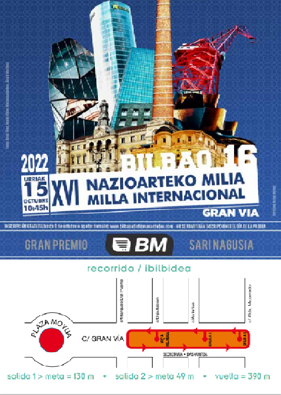 El club de Bilbao Atletismo Santutxu organiza la XVI MILLA INTERNACIONAL de BILBAO, prueba incluida en el calendario de la Federación Atlética Vizcaína y la Real Federación Española de Atletismo. La prueba se desarrolla en circuito urbano, calle Gran Vía, con un recorrido de 1.609,344 m.