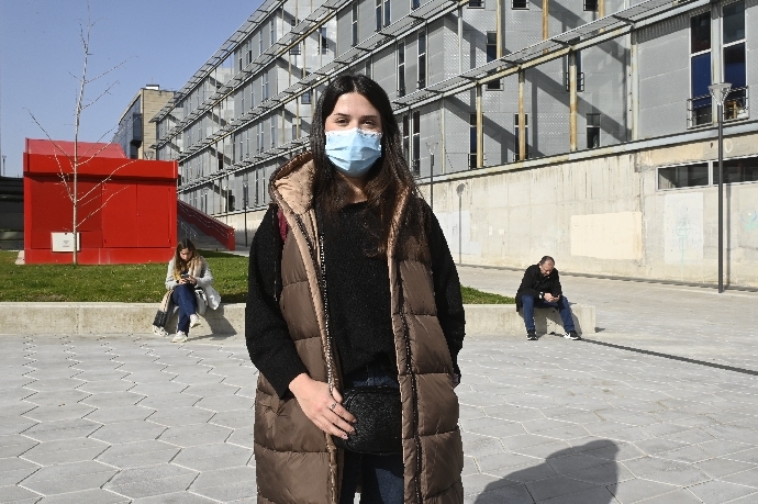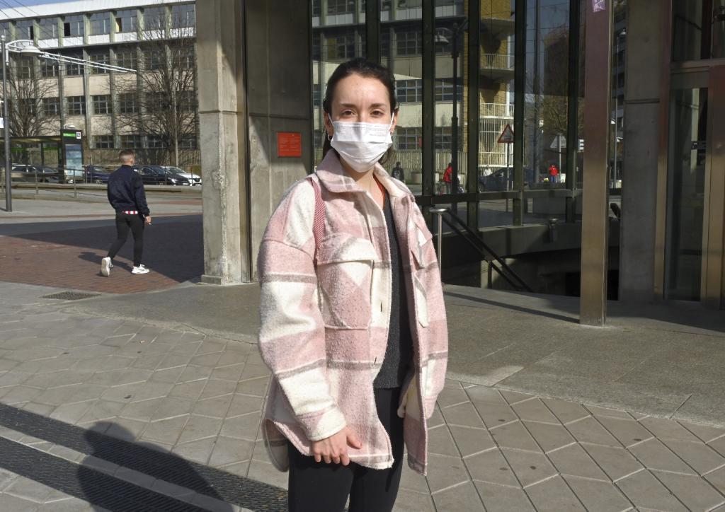 Nagore Gómez. Foto: Oskar González Nagore Gómez, es otra de las viandantes que ha optado por seguir utilizando la mascarilla aunque en su caso es "por comodidad". "Salgo de casa y voy a trabajar al Hospital de Basurto, que está al lado. Cuando salgo de casa me la pongo y así la llevo hasta el trabajo, no tengo que andar poniendo y quitando", explicaba. Confiesa que la mascarilla que más incómoda le resulta es la FFPP2, la quirúrgica "la aguanto mejor", indicaba.