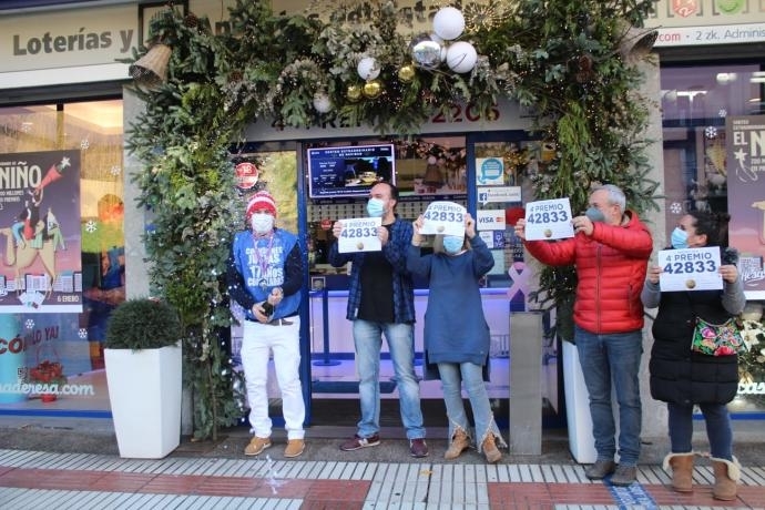 Bilbao y Laudio han repartido parte del número 42833, agraciado con el primero de los dos cuartos premios del Sorteo Extraordinario de Lotería de Navidad, dotado con 200.000 euros a la serie. El número fue cantado a las 10.59 horas en el noveno alambre de la cuarta tabla.