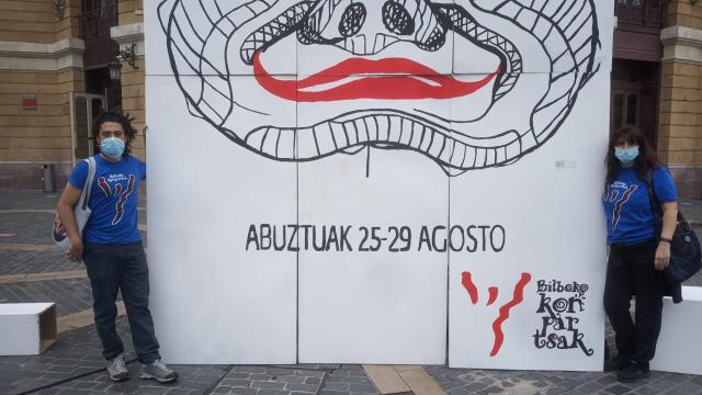 Hoy en la Plaza del Arriaga, Bilboko Konpartsak han exhibido la imagen de la iniciativa: "La sonrisa más bonita" de Bilbao. El objetivo de las jornadas, han dicho desde Bilboko Konpartsak, es "ayudar a la ciudad a recuperar la sonrisa tras el dolor y el cansancio de los confinamientos". Han llamado a participar en la kalejira popular que realizarán el 17 de julio en el Konpartsakide Eguna.