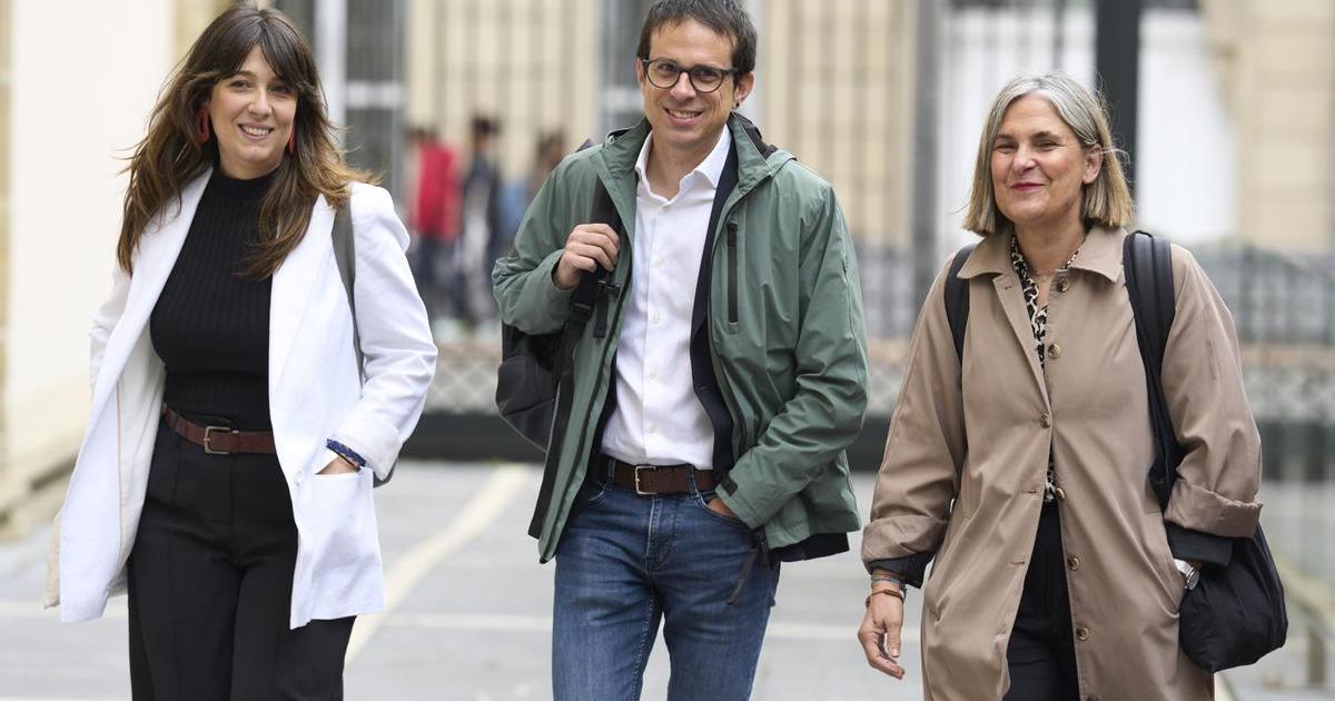 Oihana Etxebarrieta, Pello Otxandiano y Nerea Kortajarena, de EH Bildu, en una anterior comparecencia