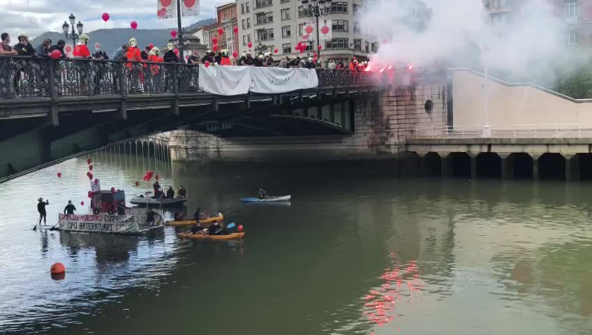 Convocados por ELA y LAB, los bomberos han partido del parque de Miribilla y se han concentrado frente al Ayuntamiento de Bilbao, donde han realizado "una acción especial" con un barco recorriendo la ría.