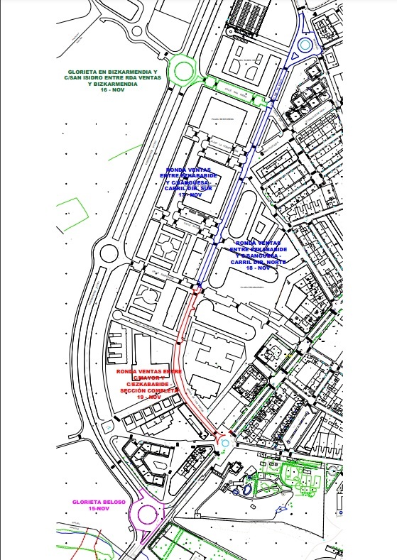 Ya el viernes se actuará también en Ronda de las Ventas pero entre la calle Mayor y Ezkababide, por ambos carriles. Se cortará por completo ese tramo (será necesario retirar los vehículos en ambos lados de la calle). Se notificará la prohibición de salir de la c/Altolaguirre y se cortará el acceso desde la c/Zubialdea a Ronda Ventas, así como la salida del parking de la Casa de Cultura.