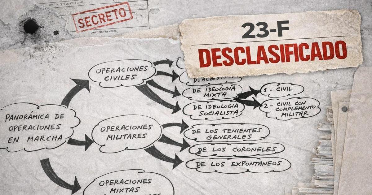 El Gobierno español desclasificó el pasado miércoles decenas de documentos del intento de golpe de Estado del 23 de febrero. Un volumen ingente de información que ahora puedes consultar y descargar en formato PDF a través de nuestro buscador generado por inteligencia artificial (si tienes problema con el visor pincha en Abrir Original)