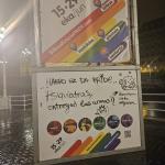 Pintadas en Bilbao en los anuncios del día del Orgullo del muelle del Arenal