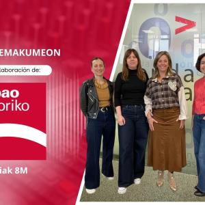 Esmeralda Hernando y Andoni Renteria se acercan a los estudios de Onda Vasca para presentar "Elaia y las esculturas de Bilbao"…