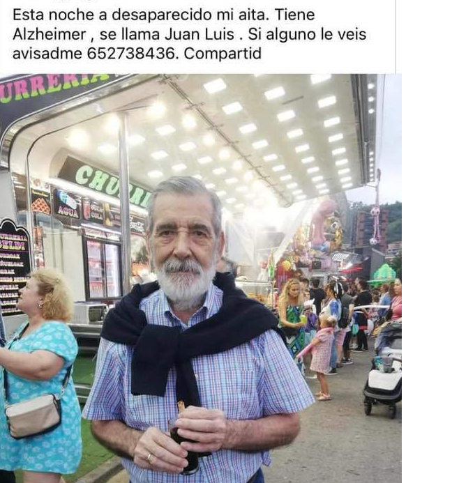 La desaparición de Juan Luis se produjo el miércoles por la noche en la zona de Begoña. Su familia ha publicado por redes sociales su foto para tratar de dar con su paradero. En la imagen se ve cómo es un hombre con pelo gris y barba del mismo color. Según han confirmado su familia, Juan Luis tiene Alzheimer.