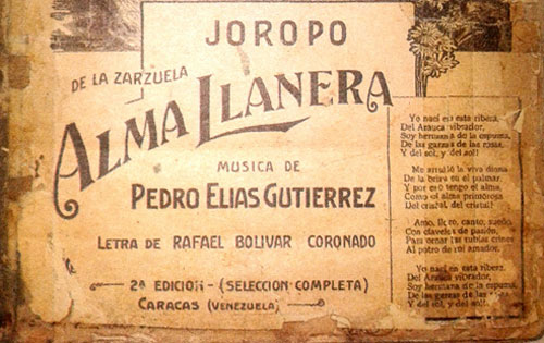«Alma Llanera» es un joropo compuesto por Rafael Bolívar Coronado. La música original del maestro Pedro Elías Gutiérrez está inspirada en el joropo «Marisela» de Sebastián Díaz Peña (primera parte de «Alma llanera»), y en el vals «Mita» del compositor de Curazao Jan Gerard Palm (segunda parte).