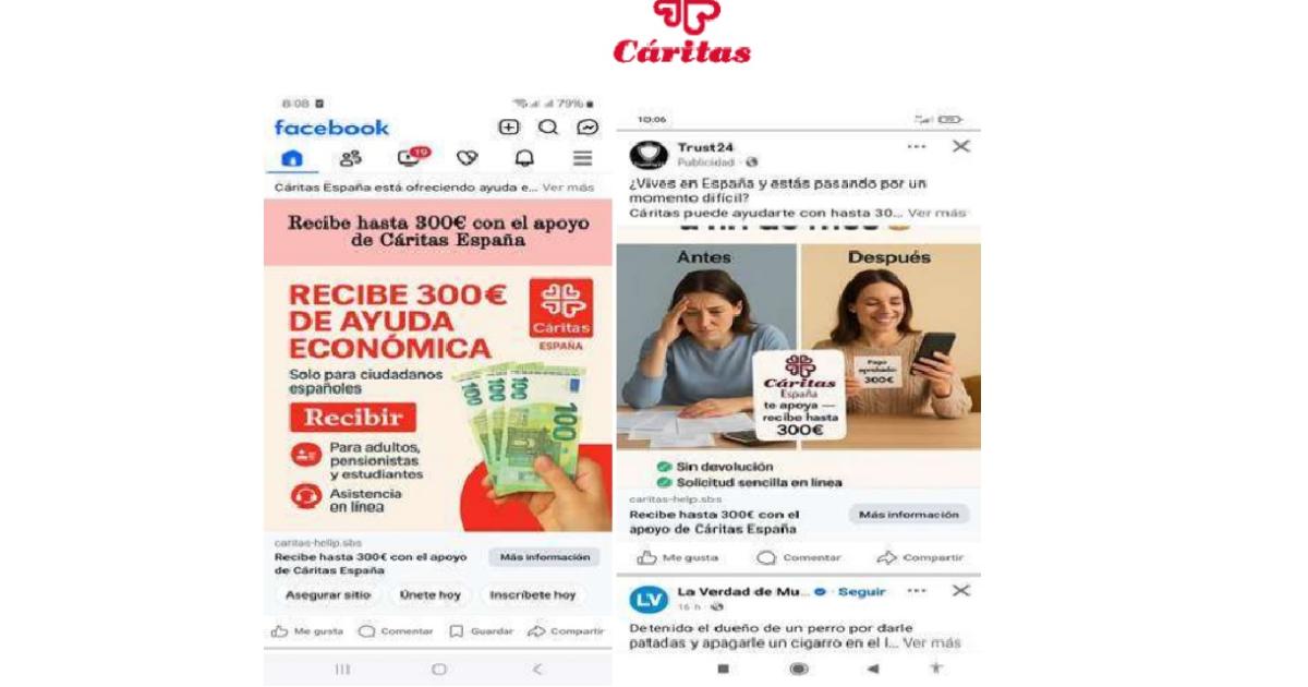 Cáritas denuncia que "en esta página web se solicita una serie de datos personales a cambio de una ayuda