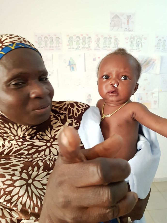 Bintou, lactante afectado de labio leporino, con su madre tras la operación.