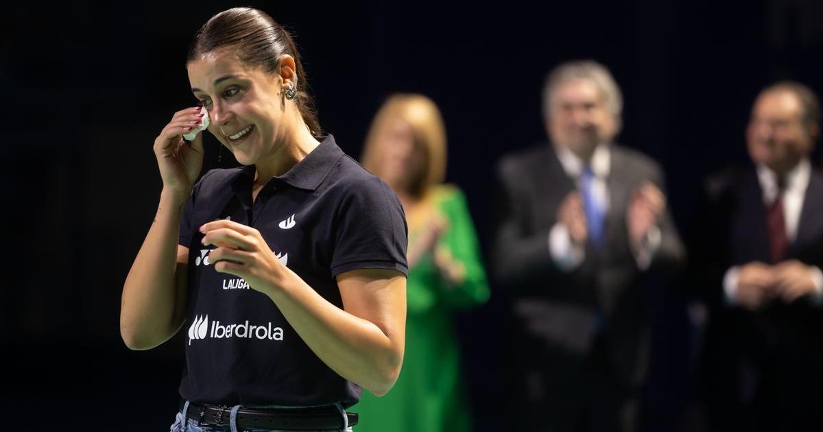 La jugadora de bádminton Carolina Marín, que se despide del deporte profesional, ha recibido este domingo un caluroso homenaje en el Palacio de los Deportes que lleva su nombre en Huelva, donde se está celebrando en Campeonato de Europa de bádminton y en donde quedará colgada para siempre su camiseta.