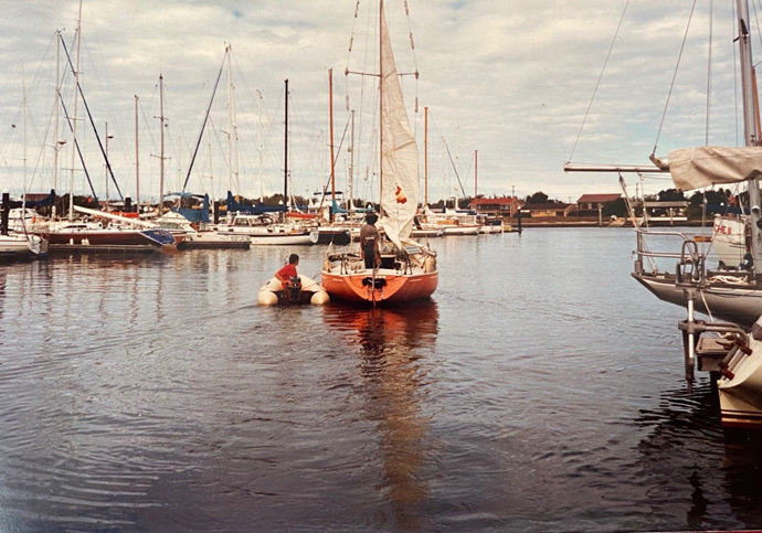 De vuelta a Pamplona, poco antes de la crisis laboral que le animó a zarpar, "un amigo tenía un Geisha, un barquito de vela de 5,5 m de eslora. Me invitó a navegar un fin de semana por las aguas del pantano de Yesa. Fue como una iluminación. Cuando estuve en la bañera del barco, navegando sin motor, empujado tan solo por el poco viento que soplaba, lo vi claro. ¿Qué más querías? Viajabas con tu casa, con la cocina, con la cama, y tenías espacio para todo. Mejor, imposible", asegura.