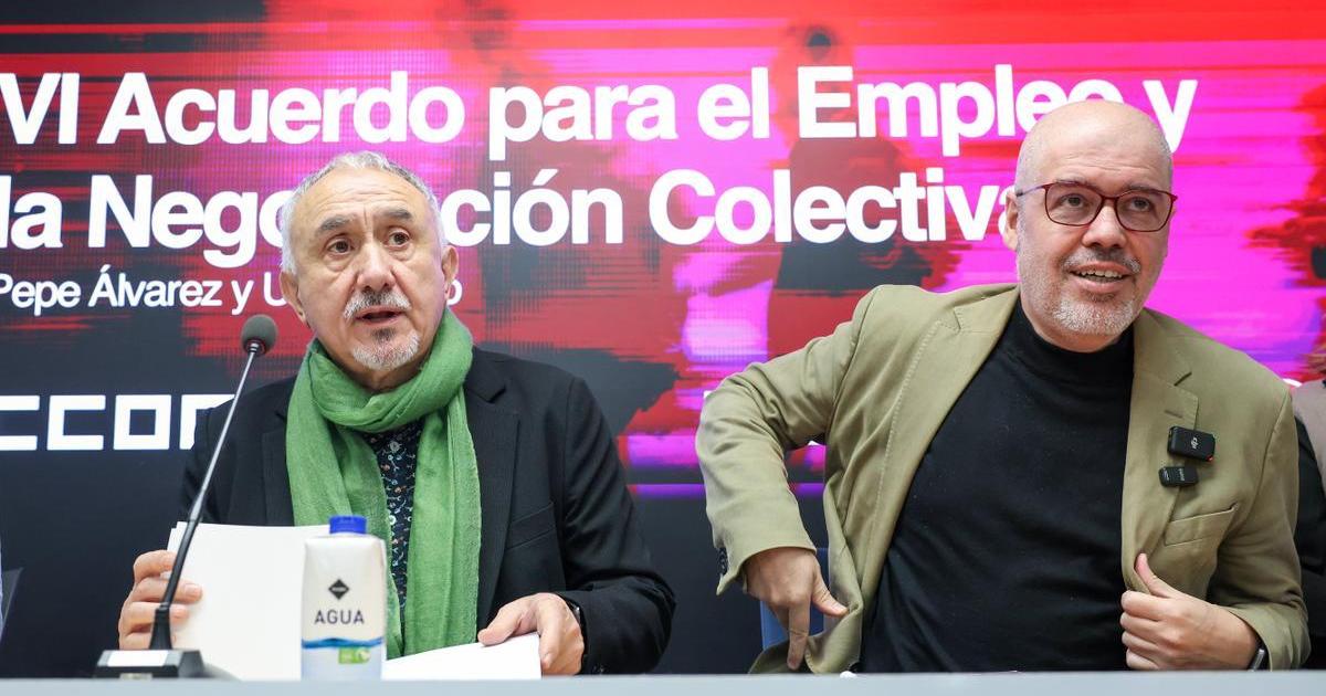 Los sindicatos CCOO y UGT presentaron este martes su propuesta para el VI Acuerdo para el Empleo y la Negociación Colectiva 2026-2028 (AENC), que plantea una subida de los salarios en convenio de al menos el 12% entre 2026 y 2028.