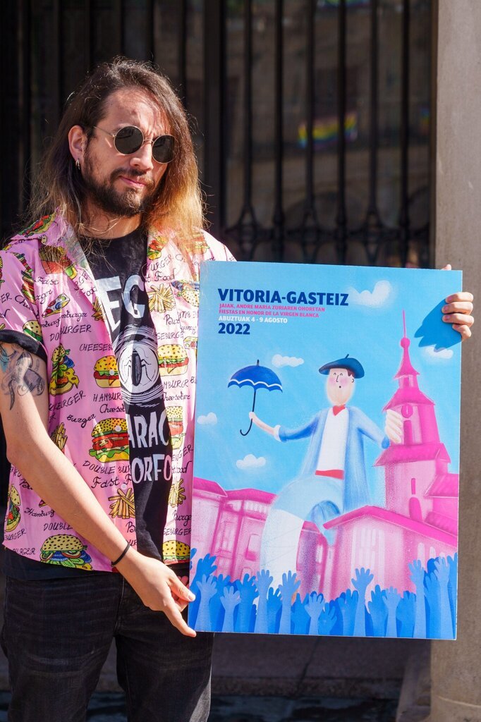 " He intentado aplicar la comedia en el cartel, para que fuera algo gracioso. Me basé en los póster de Godzilla, cuando la gente sabe que viene alguien gigantesco a la ciudad y le está esperando. En este caso, que vuelvan las fiestas, pero quise darle la vuelta para que fuera algo más alegre", ha destacado Orduz que dio sus primeros pasos profesionales como integrante de las Brigadas de la Brotxa, en el Itinerario Muralístico, y años después, como asistente de dirección en La noche más larga y en el Lince de Zaramaga, respectivamente.