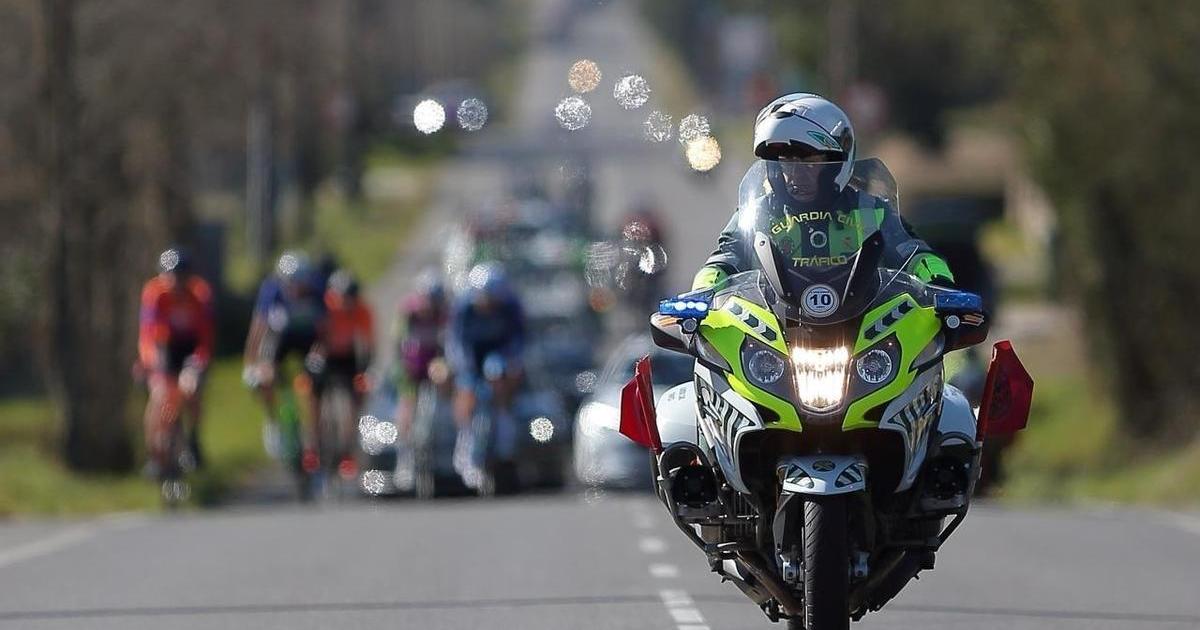Imagen de archivo de un agente de la Guardia Civil de Tráfico junto al pelotón de La Vuelta a España. / E.P.