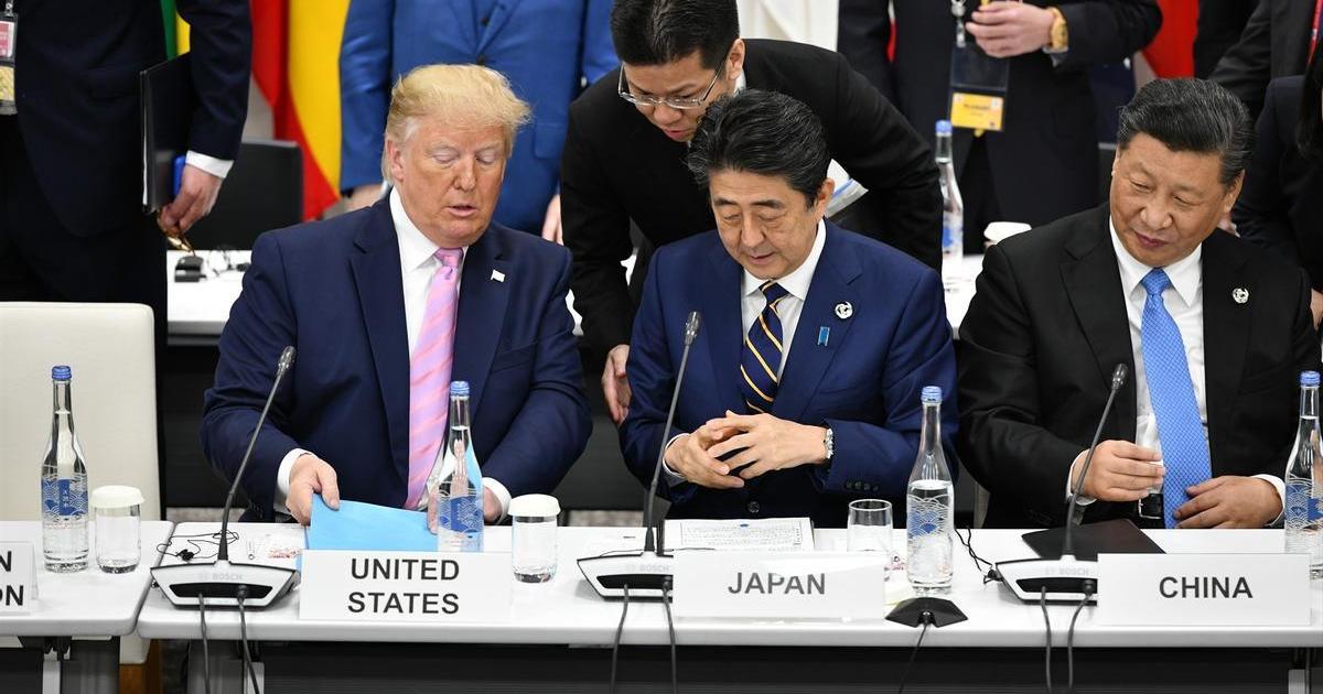 Donald Trump, el primer ministro japonés Shinzo Abe y el presidente chino Xi Jinping asisten a la Cumbre del G20.