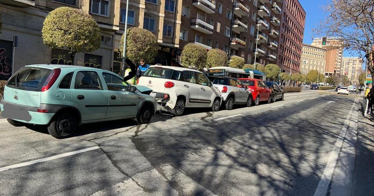 Este viernes se ha producido un choque múltiple con cinco vehículos implicados en el centro de Pamplona, informa Policía Municipal, que ha atendido el accidente. Se trata de una colisión en cadena en la avenida de Zaragoza, zona en la que en un primer momento se han registrado retenciones, pero pasadas las 14:30 el tráfico ha ido recuperando la normalidad.