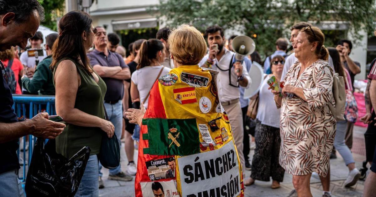 Entre un mar de banderas de España y también de la Guardia Civil, los asistentes a la concentración, que ha sido secundada por dirigentes de Vox y el líder de Se Acabó La Fiesta (SALF), Alvise Pérez, han coreado cánticos como "Manos arriba, esto es el PSOE", "Pedro Sánchez, a prisión", "Pedro Sánchez, hijo de puta", "Viva la UCO", "Rojos de mierda, a tomar por culo" o "Gibraltar español".
