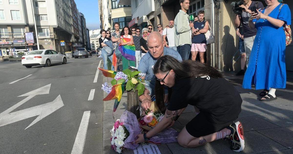 El colectivo Alas ha organizado una vigilia con flores y música en recuerdo del joven de 24 años asesinado de una brutal paliza en A Coruña