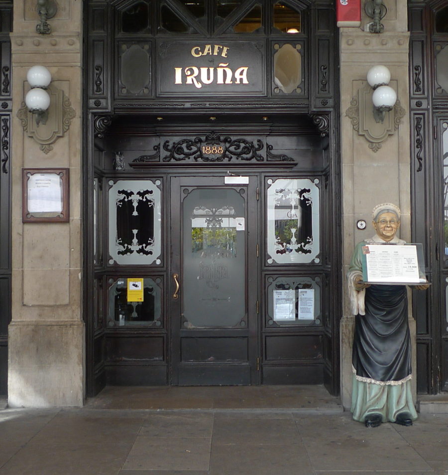 Entrada al Café Iruña de Pamplona, ubicado en la Plaza del Castillo. Foto: cafeiruna.com