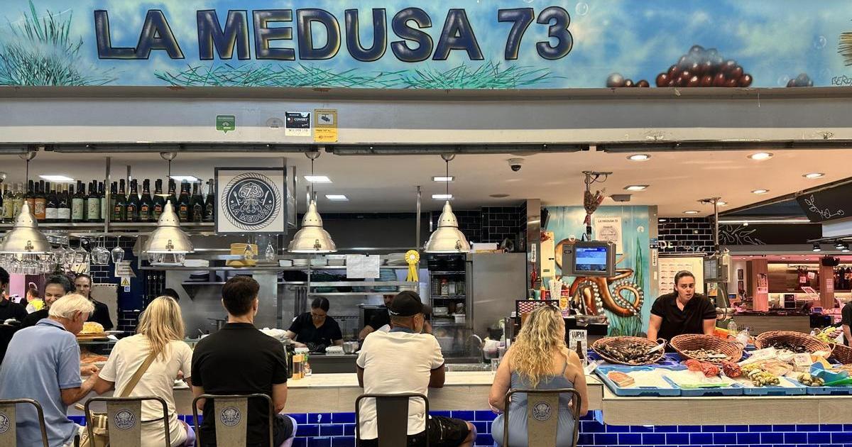 Uno de esos rincones es La Medusa 73, con su pescadería-restaurante La Sirena. Aquí, la experiencia comienza frente al mostrador: el cliente elige el género marino que más le apetezca y, poco después, lo recibe cocinado al momento, ya sea en la barra o en las mesas con butaca que se asoman a la plaza central del mercado.