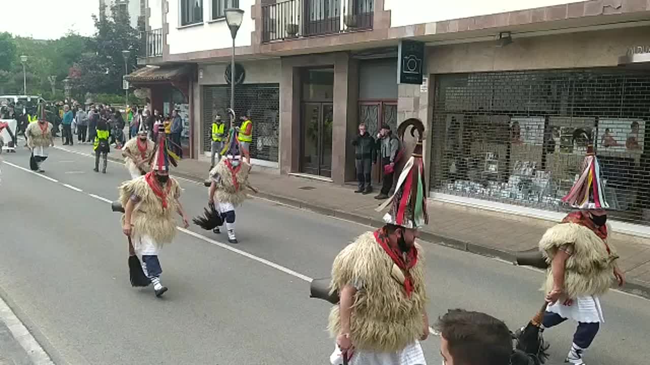 A las 17.30 horas, la plaza de los Fueros de Elizondo se quedó pequeña para acoger a toda la gente congregada en ella, gentío, que se organizó en dos filas, recorriendo la calle Santiago de la localidad.