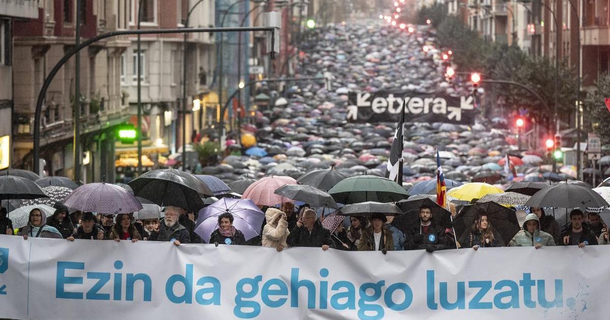 Miles de personas han desafiado este sábado a la lluvia para reclamar en Bilbao los derechos del centenar de presos de ETA que siguen en prisión purgando por sus condenas casi quince años después de que la banda armada anunciara el fin de su actividad violenta y siete años desde su desarme. La movilización por los presos es habitual todos los comienzos de año, pero en esta ocasión, la protesta ha puesto el foco en las leyes excepcionales que se mantienen en los ámbitos legislativos, judicial y penitenciario y que, a juicio de la red Sare, convocante de la marcha, son un candado que impide la libertad de algunos presos y presas y en otros casos el acceso a los beneficios penitenciarios en modo de progresión al tercer grado y poder así completar la condena en régimen abierto.