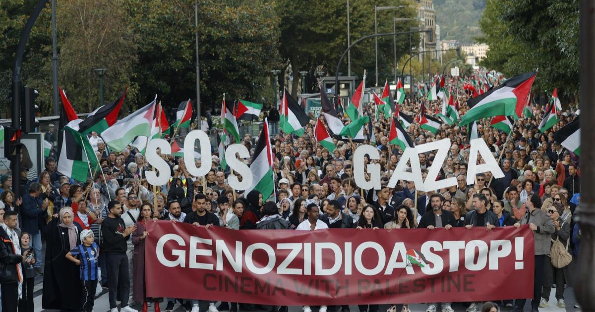En el marco de Zinemaldia, miles de personas se han manifestado este miércoles, convocados por la comunidad palestina en Euskal Herria y representantes del mundo cinematográfico para exigir el fin del genocidio de Israel en Gaza y en solidaridad con el pueblo palestino. Entre los manifestantes se encontraban el ministro de Cultura, Ernest Urtasun, el director del Zinemaldia, José Luis Rebordinos, así como los cineastas Julio Médem, Isaki Lacuesta, Alberto San Juan o Dolores Fonzi.