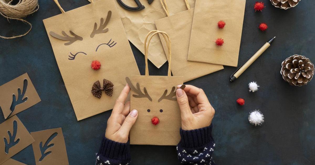 Con esta sencilla idea, una bolsa de papel reciclado puede convertirse en un envoltorio creativo y personal para preparar cualquier regalo y darle un aire especial.