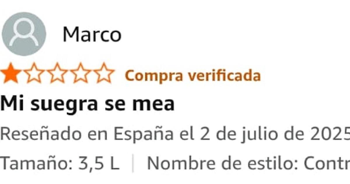 No es para menos. El título de la reseña es “Mi suegra se mea” y el texto no tiene desperdicio. “Hace más ruido que un tractor resfriado: el ventilador zumba, el agua burbujea sin parar, y lo peor de todo: ese ‘glup-glup-glup’ constante que parece que estás en una fuente del Retiro… Resultado: te entran unas ganas de mear que no puedes con tu alma”, comienza.