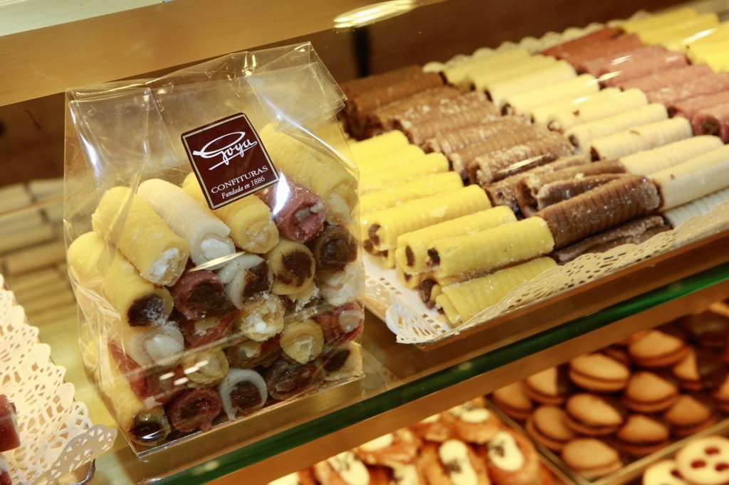 Entrar en Goya es adentrarse en la historia de la confitería y bombonería artesanal de Vitoria, de sus deliciosos productos, como vasquitos y nesquitas, seña de identidad de esta empresa familiar fundada en 1886, o de las inconfundibles cajas y latas que los guardan y que tan bien exhiben sus escaparates, que además de ser todo un reclamo turístico, han salido en películas, como la de El silencio de la ciudad blanca.
