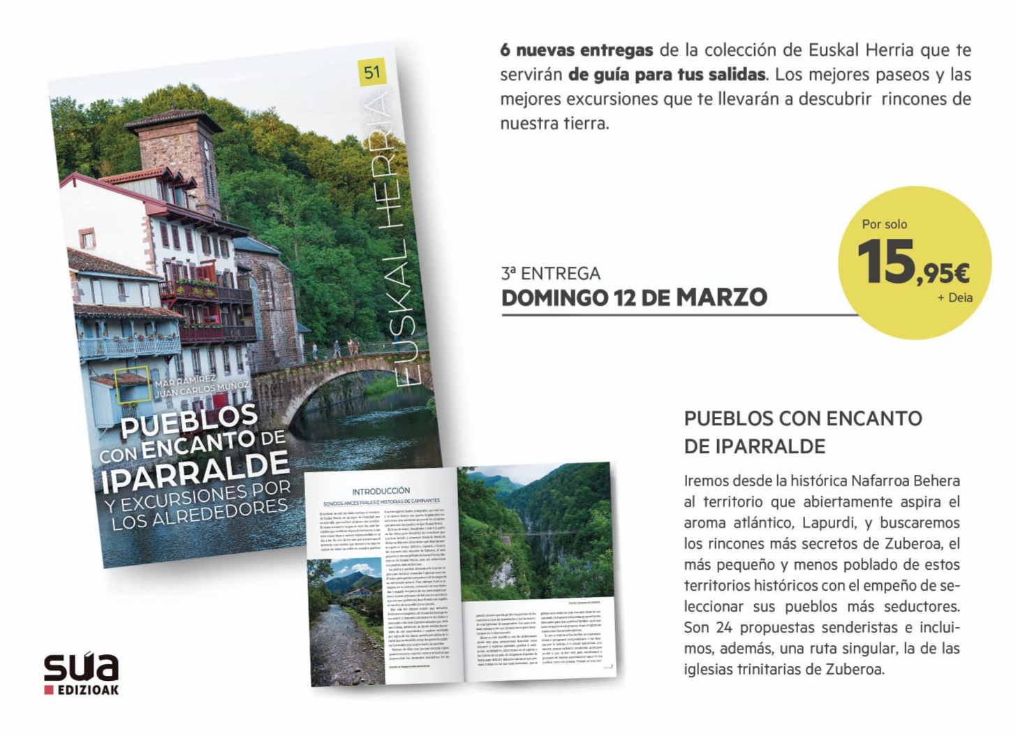 Deia te ofrece 6 nuevas entregas de la colección EUSKAL HERRIA que te servirán de guía para tus salidas. La guía de montaña, Mar Ramírez te acerca a Iparralde y sus pueblos con encanto. Puedes adquirir la guía este domingo 12 de marzo.