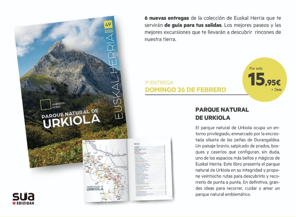 Deia te ofrece 6 nuevas entregas de la colección EUSKAL HERRIA que te servirán de guía para tus salidas. Alberto Muro, periodista y fotógrafo nos ameniza un recorrido por el parque natural de Urkiola.