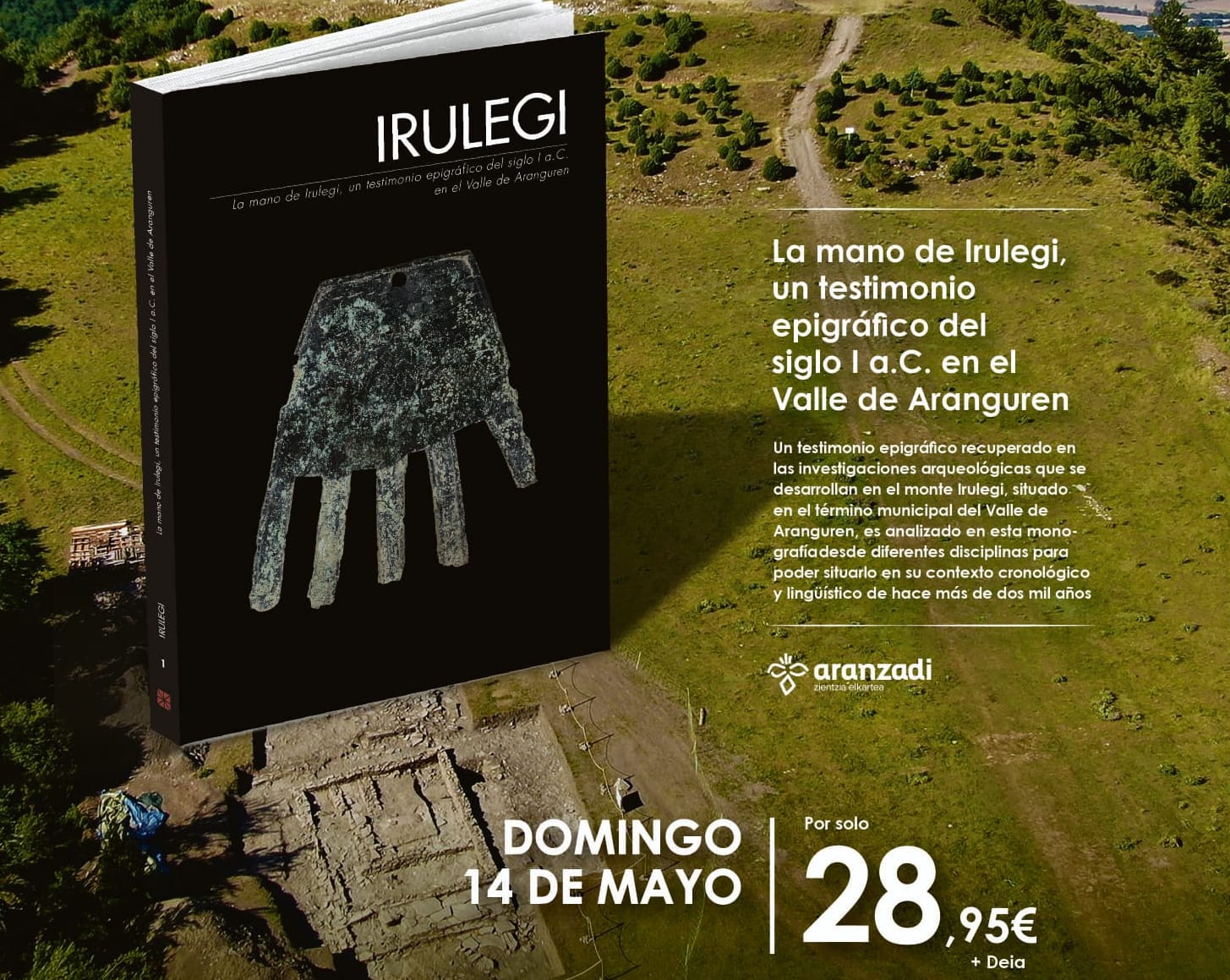 Este domingo 14 de mayo con Deia, se puede adquirir el libro Irulegi por 28,95 euros, un testimonio epigráfico recuperado en las investigaciones arqueológicas que se desarrollan en el Valle de Aranguren. Mikel Edeso Egia, gestor del proyecto explica que en esta edición especial se habla del desarrollo de la excavación, el contexto histórico-cultural, el hallazgo de la mano, su interpretación y…