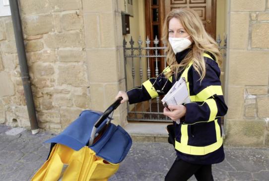 Isabel echa un vistazo a lo que tiene, prioriza las entregas 24 horas y las notificaciones y carga en su coche particular todo lo que cree que podrá entregar en el día. A las 9.30 como muy tarde ya está en marcha. Le gusta conducir y le toca hacerlo por carreteras secundarias, esas que le llevaran durante toda la mañana a Paganos, Samaniego, Villabuena, Leza y Navaridas para ir entregando su mercancía y, a la par, vaciando su coche. El servicio de paquetería ha aumentado y su trabajo se ha incrementado. Llenar el carrito con el que recorre a pie cada una de estas localidades requiere cierta pericia. Hacerlo correctamente le evita regresar a su vehículo para llenarlo de nuevo.