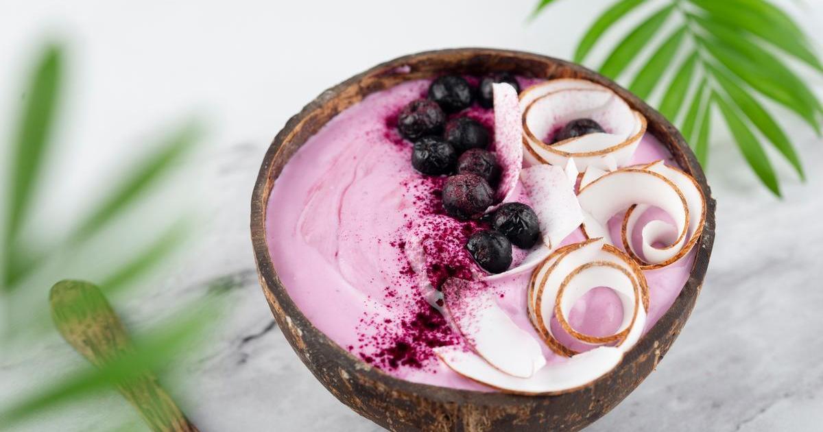 Empezar el día con un smoothie bowl es sencillo como delicioso. Para la base, tritura plátano, papaya, arándanos y frambuesas congeladas. mezcladas con un poco de leche. Si puedes agregar proteína en polvo. Para la decoración, añade pitaya troceada, kiwi o la fruta que desees.