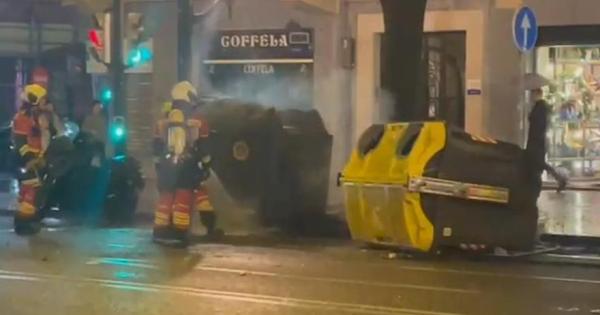 Contenedores ardiendo en la Gran Vía de Bilbao
