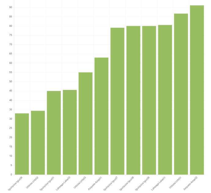 En la mancomunidad de Montejurra, de las 4 localidades participantes del Distrito de Igúzquiza, destaca Ázqueta con un punto de contenedores con un porcentaje del 90% de bolsas orgánicas perfectamente seleccionadas. Le sigue de cerca la localidad de Urbiola, donde el punto de contenedores principal tiene una tasa de reciclaje del 85%. Y cierran la clasificación las localidades de Igúzquiza y Labeaga. Cabe destacar una variabilidad importante entre los diferentes puntos de contenedores de cada localidad, lo que hace que los primeros puestos no sean aún definitivos.